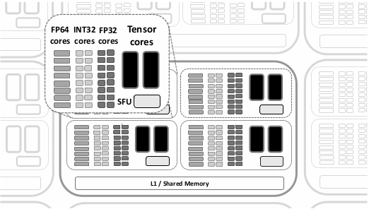 Tensor core는 NVIDIA GPU volta architecture(2018)부터 등장한 Matrix multiply-accumulate (MMA) 연산을 지원하기 위한 specialized computing unit이다. 다양한 NPU(Google의 Tensor Processing Unit 등)들과 같이, 딥러닝이 대세가 되고 matrix-multiplication이 많은 애플리케이션에서 주요한 성능 병목이 되면서 NVIDIA가 GPU에도 탑재한 것으로 생각된다.