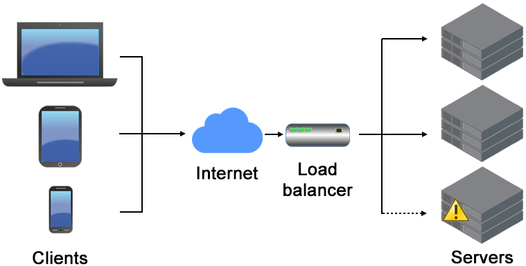 Fig 1.은 load balancing 기능을 수행하는 load balancer의 역할을 보여주는 그림이다. Fig 1.과 같이 다양한 Clients가 접속하는 네트워크 상의 엔트리가 되며, 각각의 Client들은 load balancer에 사용자 요청(트래픽)을 전송한다. Load balancer는 내부 load balancing 규칙에 따라 들어오는 사용자 요청을 내부 Server들에게 배분한다.
