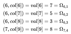 rowptr[5] = 4이고, rowptr[6] = 4이다. 이 말은 col[4]이상 col[4]미만 row 5와 매칭된다는 것으로 row 5와 매칭되는 col은 없다는 것이다. 행렬 Ω의 5번째 row의 모든 요소는 0임을 확인할 수 있다.