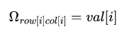 희소행렬 Ω의 row, col, val array는 다음과 같다.