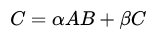 행렬 A, B, C와 스칼라 α, β에 대하여 GEMM의 specification은 다음과 같다.