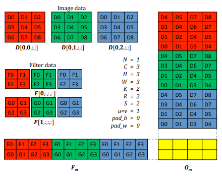 GEMM은 빠른 연산이 가능하지만, GEMM based convolution을 위해서는 2가지 overhead가 발생한다. 첫 번째는 Input을 column matrix로 바꾸는 overhead와 두 번째는 column matrix를 저장하기 위한 memory overhead이다.