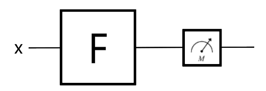 양자 회로는 양자 병렬성을 이용하여 빠른 계산이 가능하다. 양자 병렬성은 양자 회로가 디지털 회로에 비해 빠를 수 있는 이유 중 하나로 양자의 상태 중첩 (Superposition) 을 이용한 특징이다. 다음 Fig 1.과 같이 입력 X에 따라 값을 출력하는 함수 F (unitary operation)이 있다고 하자. X는 F의 입력으로 들어가고, 그 결과 X의 상태가 진화한다. 이후 진화된 X의 값을 측정하면 하나의 상태로 collapse한다. 이때, F(|0⟩), F(|1⟩)의 값을 구하려고 한다.