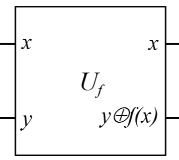 Fig 2. 는 도이치 알고리즘에 사용되는 양자 회로를 나타낸 블록이다. 위 블록은 |x,y⟩가 입력으로 들어오면 |x,y⊕F(x)⟩를 출력한다. 이때 ⊕ 연산은 두 값을 더한 후 2로 나눈 나머지를 구하는 연산이다.