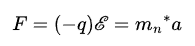전자의 전하량을 q라고 한다면, 전기장 E에서 전자가 받는 힘의 크기는 qE로 나타낼 수 있다. 전자가 이동하는 방향은 전류의 방향과 반대이므로 - 부호를 붙인다. 고전 역학에서 입자가 받는 힘은 입자의 질량과 가속도의 곱으로 나타낼 수 있다.