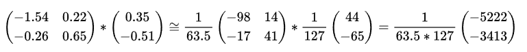 위 양자화 예제를 확장하여 matrix multiplication에도 도입할 수 있다. Fig 5.는 양자화를 이용한 matrix multiplication를 나타낸다.
