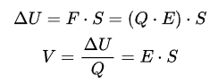 어떤 물체에 해준 일은 물체의 에너지 변화량과 같다. 즉 힘 F로 S만큼 점전하 Q를 움직였을 때 해준 일의 양이 점전하 Q의 전위 변화량이다. 방향과 크기가 일정한 전기장 E가 단위전하에 해준 일의 양은 V와 같으며 두 관계는 다음과 같다. s는 전기장에 의한 점전하의 이동거리이다.