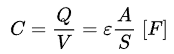 전기 용량 (커패시턴스, capacitance)은 단위 전위차에 의해 커패시터에 저장되는 전하량을 의미하며 단위는 F(패럿)이다. 전기 용량을 C, 저장되는 전하량을 Q, 커패시터에 인가된 전압을 V, 커패시터의 넓이 A, 두 판 사이의 거리 S, 유전체의 유전율 ε이라 할 때 다음 Eq 1.과 같이 표현된다.