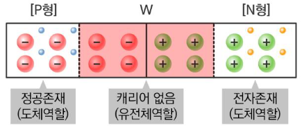 PN 접합 시, 접합면을 따라 자유전자와 정공의 charge carriers가 사라진 공핍층이 생긴다. 공핍층 내에는 donor와 acceptor 원자들은 여전히 남아있기에 P형 반도체의 공핍층은 (-)극으로, N형 반도체의 공핍층은 (+)극으로 전도된다. 따라서 공핍층은 유전체 역할을, carriers가 남아있는 P형, N형 반도체 영역은 도체(plates) 역할을 한다. 이러한 PN 접합 특징을 이용해 전기를 저장할 수 있게 된다.