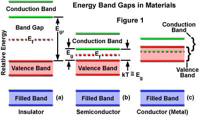 도체는 Valence band (원자가띠, 최외각 전자가 존재)가 Conduction band(전도띠)가 붙어있기에 전자(정공)가 쉽게 이동함