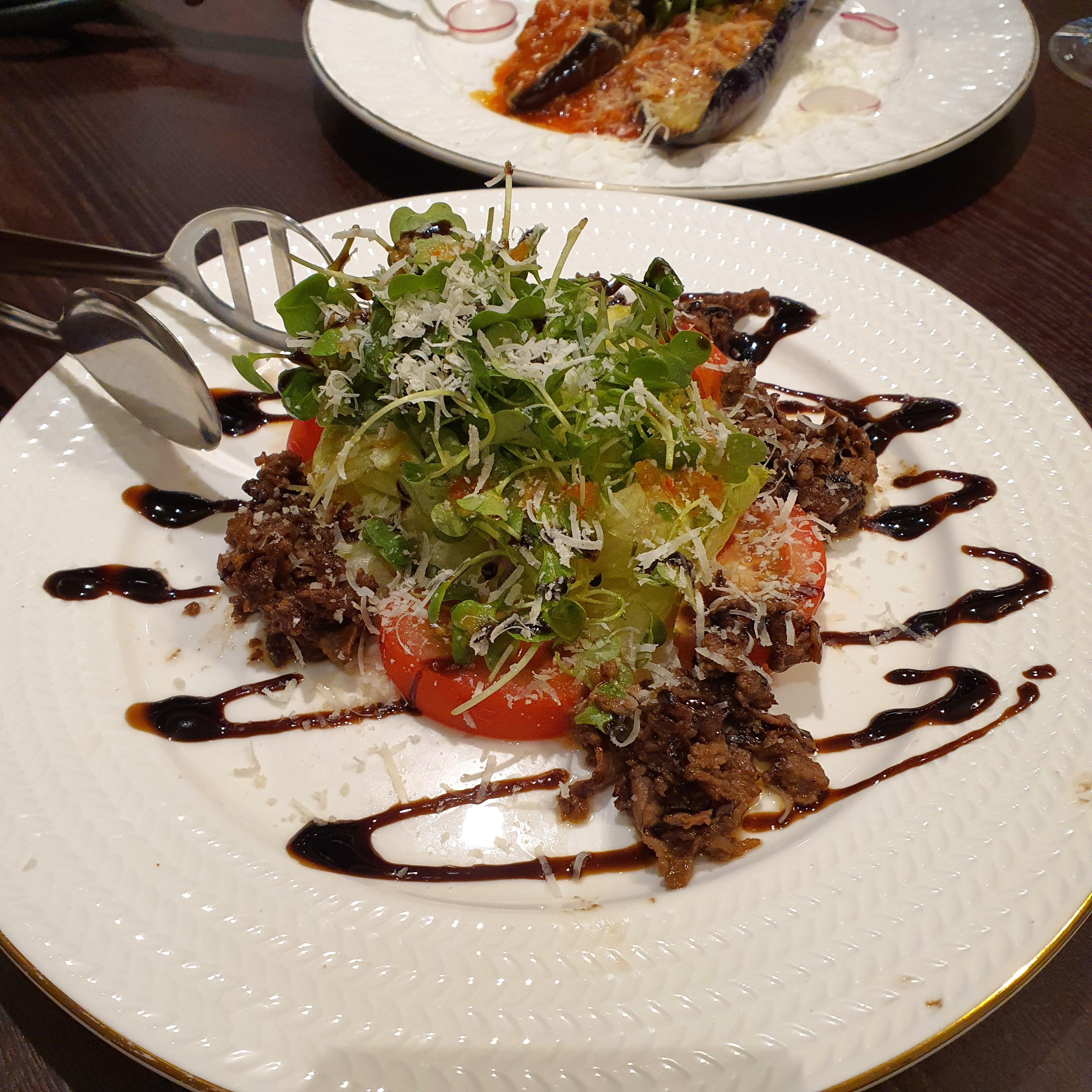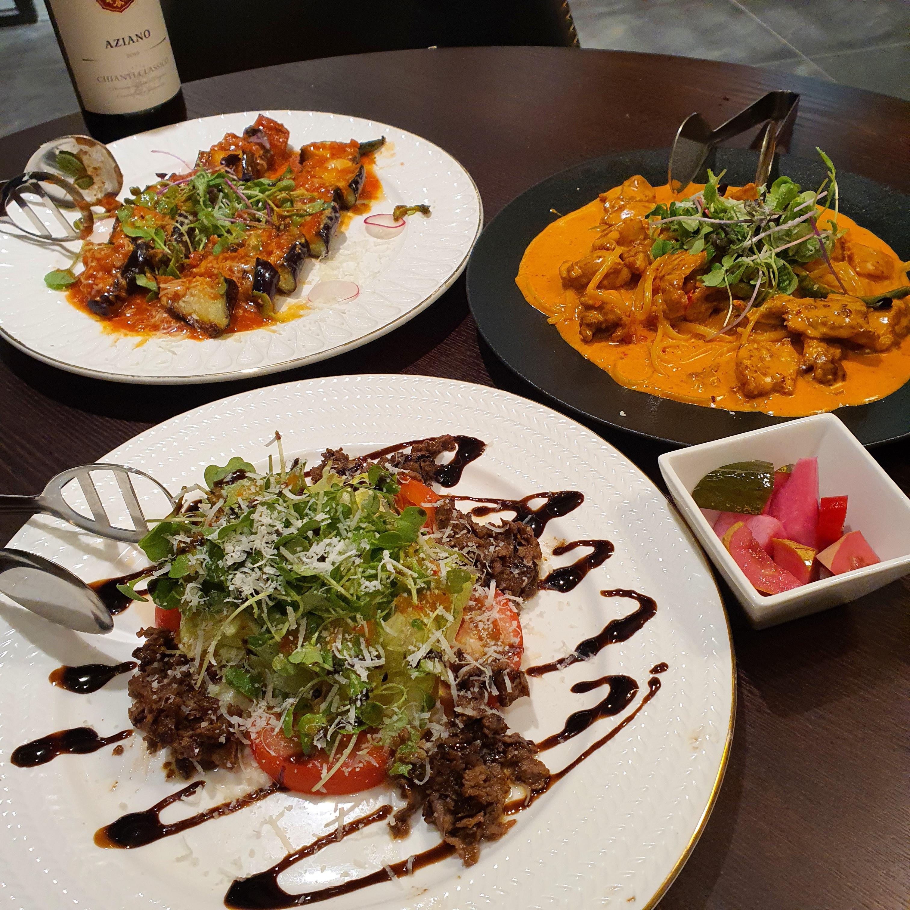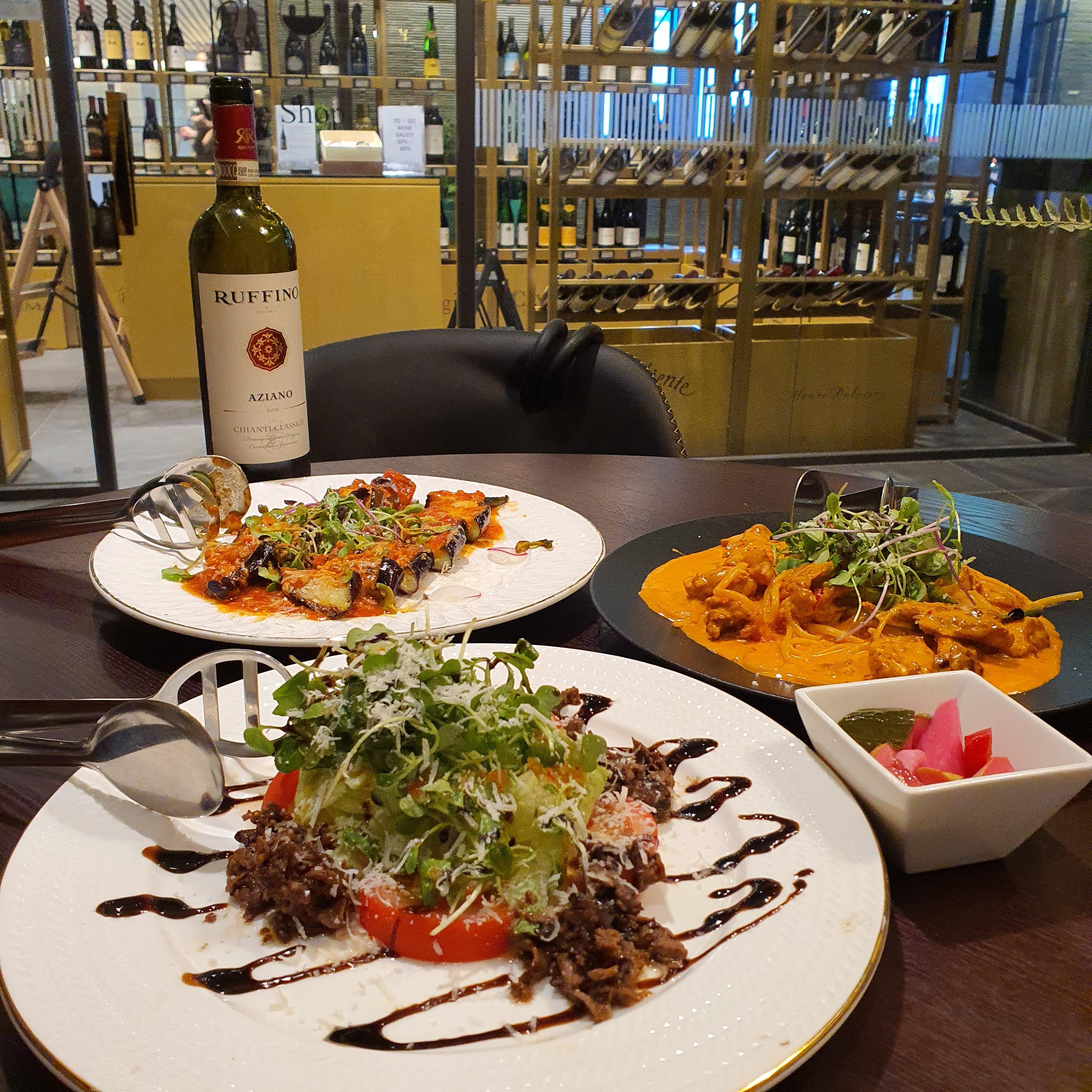 와인 한잔씩도 시킬 수 있지만 식당 옆에 와인이 진열되어있어 와인 한병을 시켰다. 와인 가격은 와인바보다는 저렴하나 샵에서 사는것보다는 조금 비싼 느낌이다. 다만 와인샵에서 와인 구매만 할 시 어느정도 할인해주는 것 같다.